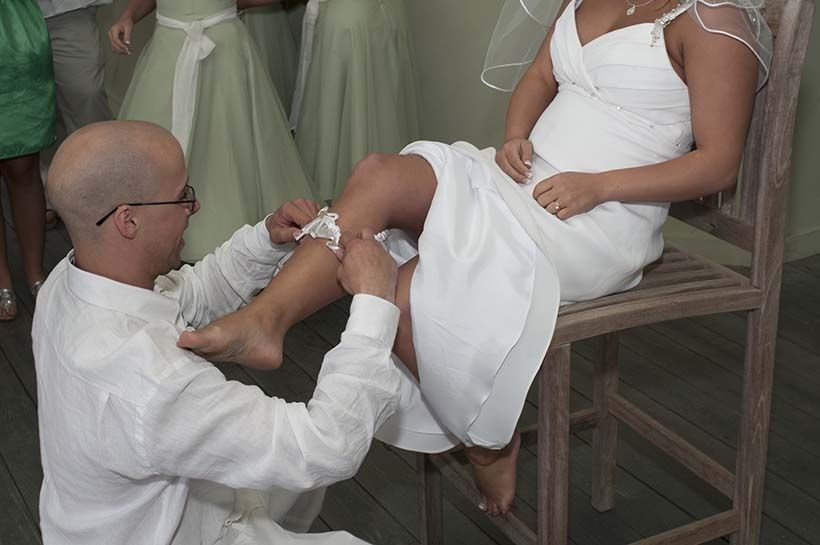 Perhaps you are one of those couples who really don't like the spotlight on them? Of course the spotlight is on the bride as the groom goes up her dress. The best solution here would be for the groom to possibly remove the garter in private.