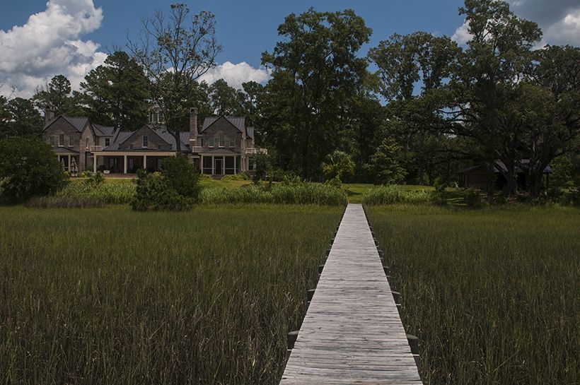 Upon passing this beautiful entrance, you will drive down the gravel road and veer to the left and reach the breathtaking home of Bill & Coy. While their home is off limits during events, brides and grooms who book with Thomas Hall have access to the grounds, which back up to the beautiful marsh.