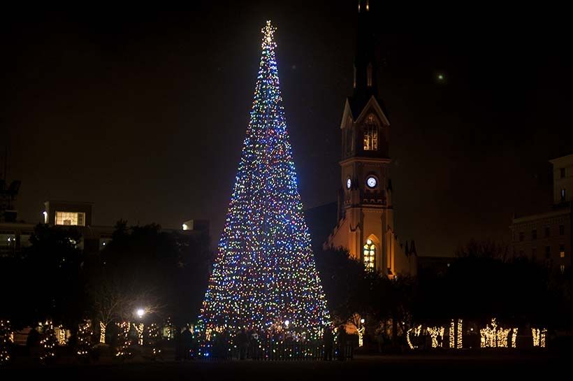 All of a sudden, Matthew arose from his romantic holiday embrace with Jennifer to check out the "clatter" outside the hotel and across the street at Marion Square. The evening was rather active with couples and families, as well as children trying to get their Christmas selfies made by the Christmas tree. Matthew saw the Christmas tree all lit up, as well as one young lady who was laughing very loudly and being chased around the field around Marion Square by her boyfriend. How romantic could that be? It was a guy and his girlfriend being playful on Christmas Eve. All of a sudden, they stopped as she tripped and fell, and he gingerly landed on top of her. They held each other in a romantic embrace with their eyes all aglow. He was telling her how much he wanted to spend the rest of her life with her. After a few minutes, he pulled out this small box, which later was found to be an engagement ring, and he proposed to her. After she said "yes", they both got up and were seen running and frolicking around the field with joy until they stopped under the Christmas tree, took a selfie and uploaded a photo of her new ring to her Facebook and Instagram. She said yes.